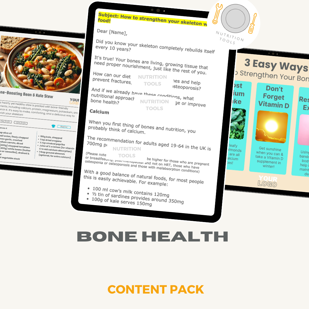 Email: This email educates readers on how nutrition plays a vital role in maintaining strong, healthy bones and preventing conditions like osteoporosis. It covers essential nutrients such as calcium, vitamin D, protein, and lesser-known bone-supporting minerals like magnesium and potassium. With practical meal ideas, simple food swaps, and supplement guidance, readers gain actionable steps to build better bone health.