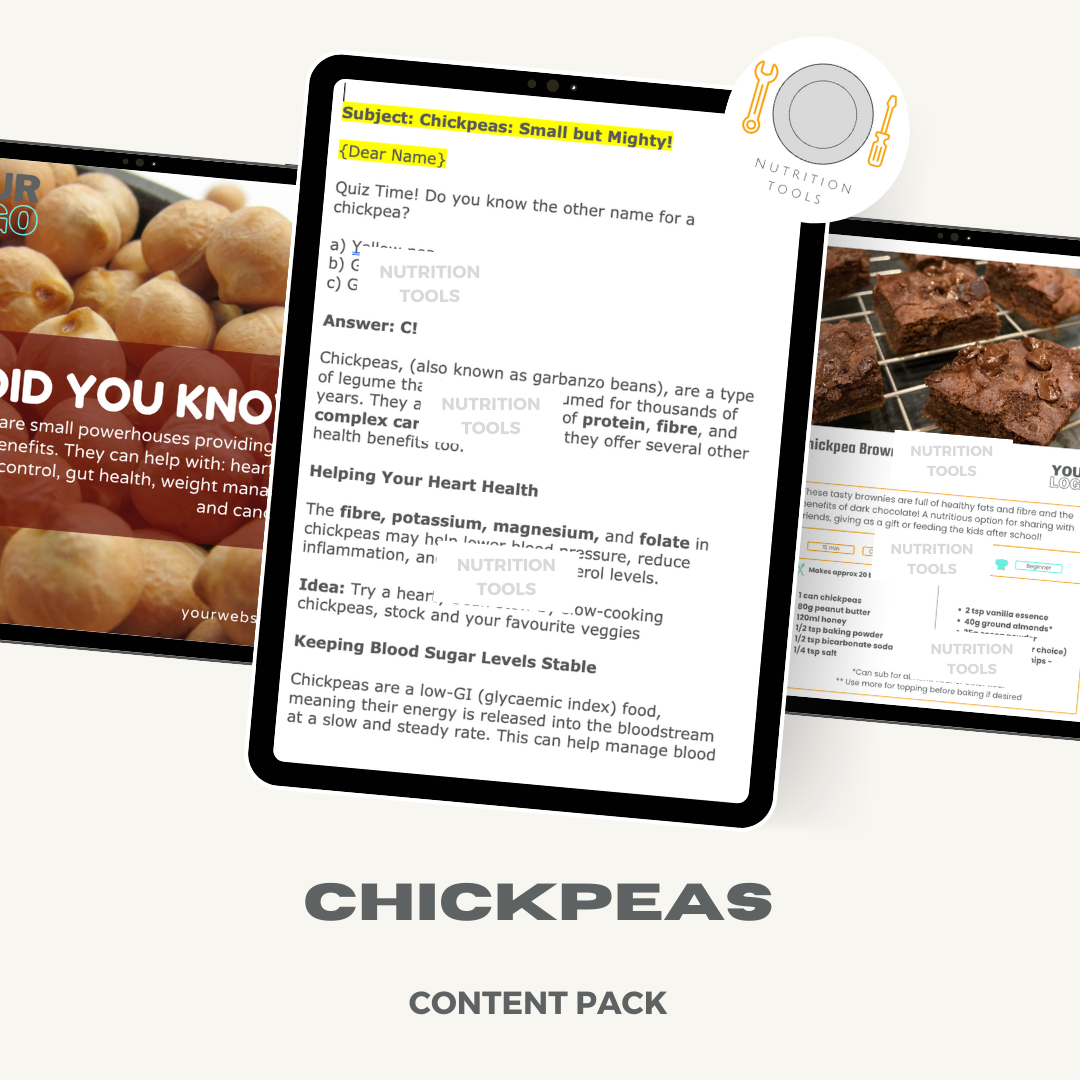Email: highlighting the health benefits of chickpeas and ideas for including them more in meals and snacks