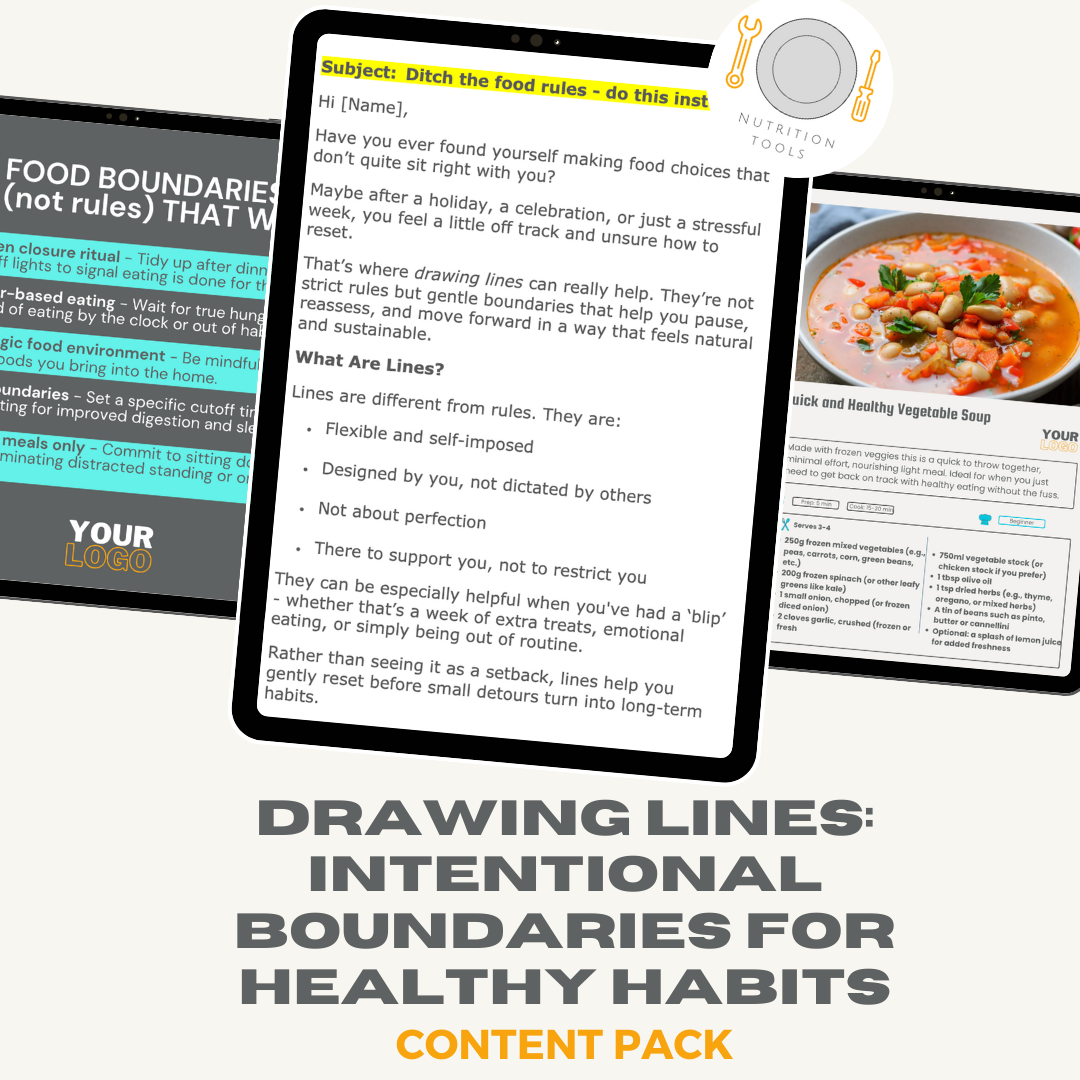 Email: This email helps readers break free from restrictive food rules and embrace flexible, self-imposed lines, gentle boundaries that support healthy eating without guilt or obsession. It provides practical strategies, mindset shifts, and long-term lifestyle choices to help individuals regain balance, prevent setbacks from turning into long-term struggles, and develop a sustainable approach to nutrition.