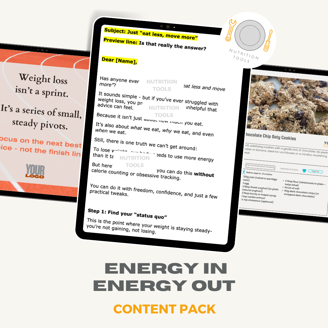 Email: This ready-to-send email reframes the oversimplified advice of “eat less, move more” into a compassionate, step-by-step guide for creating sustainable fat loss without calorie counting or overwhelm. It empowers readers to identify their personal starting point (“status quo”) and make gentle, practical tweaks to portions, habits, snacking, and movement.