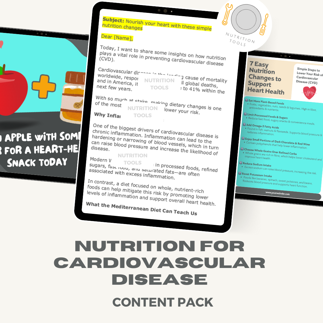 Email: This email highlights how strategic dietary changes can significantly reduce the risk of cardiovascular disease (CVD). It explains the role of chronic inflammation as a driver of CVD, exacerbated by processed and high-sugar foods, and promotes the Mediterranean diet as a model for reducing inflammation and improving heart and gut health. Key practical tips include increasing plant-based foods, adding omega-3s, limiting processed foods, incorporating fermented foods for gut health, and enjoying dark chocolate and red wine in moderation. The email emphasises small, sustainable changes for long-term heart health.