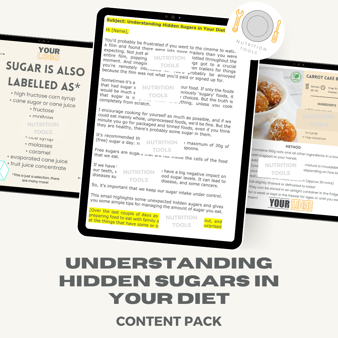 Email: This email is designed to help individuals understand and manage hidden sugars in their diet. It highlights how sugar is often found in unexpected foods, not just the obvious sugary treats, and explains the impact of excess sugar on health. Readers are encouraged to check food labels, learn the different names for sugar, and make small changes, especially at breakfast, to reduce their sugar intake. The email offers practical tips for managing sugar consumption and explains how processed sugars differ from natural sugars found in fruits.